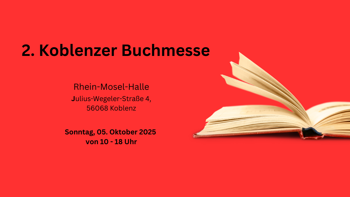 es freut mich sehr, dass die Koblenzer Kulturlandschaft seit dem letzten Jahr um eine Veranstaltung reicher ist. Nach dem großen Erfolg der ersten Koblenzer Buchmesse mit über 1.400 Besucherinnen und Besuchern kehrt sie am 5. Oktober 2025 in die Rhein-Mosel-Halle zurück.